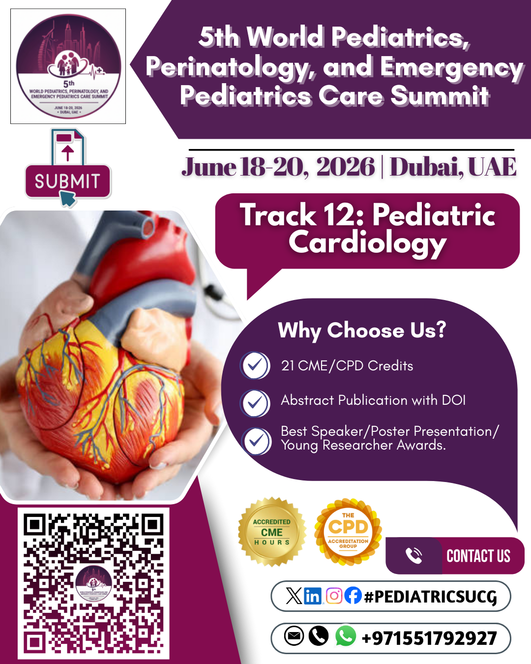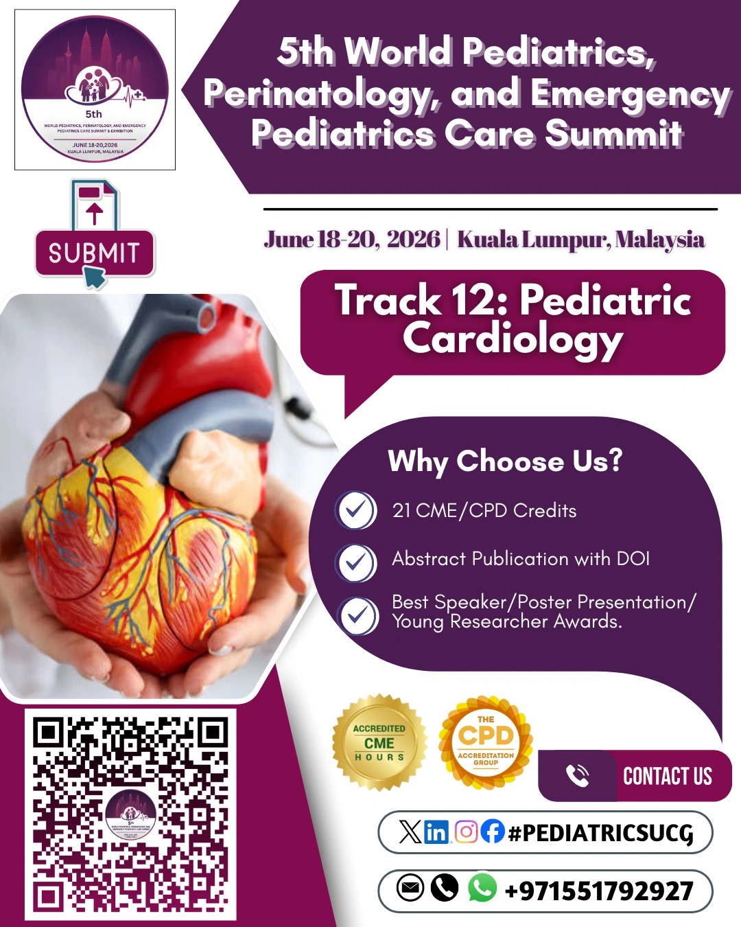 Subtopics: Pediatric Heart Diseases, Congenital Heart Defects, Pediatric Echocardiography, Pediatric Cardiac Surgery, Pediatric Arrhythmias, Pediatric Interventional Cardiology, Pediatric Heart Failure, Pediatric Cardiac Imaging, Pediatric Preventive Cardiology, Pediatric Electrophysiology, Pediatric Cardiac Rehabilitation, Pediatric Cardiac Genetics, Innovations in Pediatric Cardiology