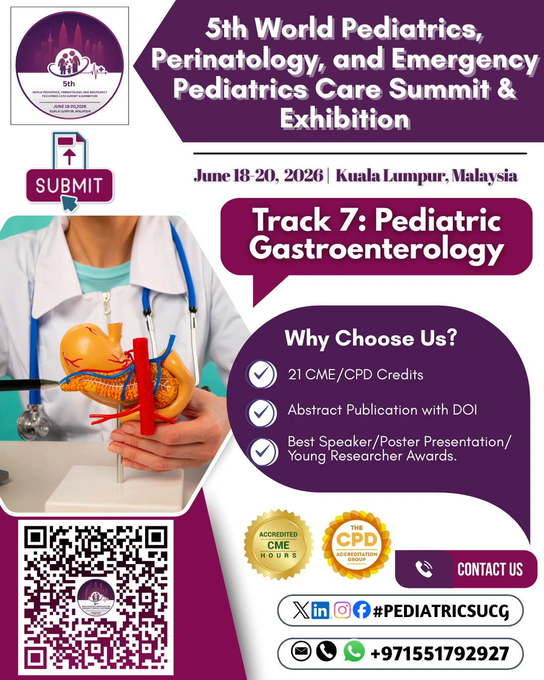 Subtopics: Pediatric Liver Diseases, Pediatric Gastrointestinal Disorders, Inflammatory Bowel Disease (IBD), Pediatric Endoscopy, Gastrointestinal Motility Disorders, Pediatric Hepatology, Celiac Disease, Nutrition and Malabsorption, Gastroesophageal Reflux...