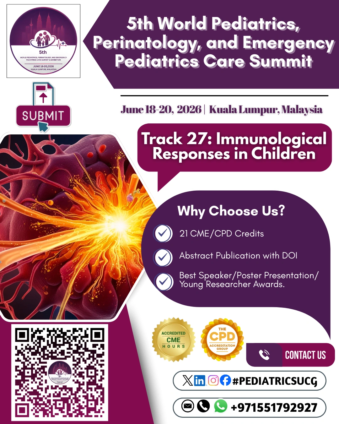 Subtopics: Pediatric Immunology, Immune System Development, Childhood Autoimmune Disorders, Pediatric Immunodeficiency, Allergy and Hypersensitivity Reactions, Vaccine Immunology, Infectious Disease Immunity, Cytokine Regulation in Children, Immunogenetics,...